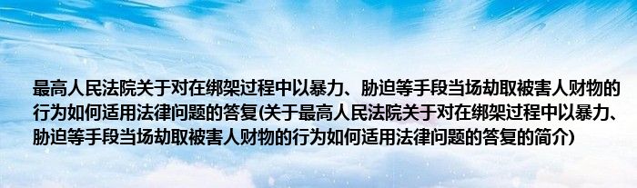 大家好,最高人民法院关于对在绑架过程中以暴力、胁迫等手段当场劫取被害人财物的行为如何适用法律问题的答复,关于最高人民法院关于对在绑架过程中以暴力、胁迫等手段当场劫取被害人财物的行为如何适用法律问题的答复的简介很多人还不知道,现在让我们一起来看看吧!