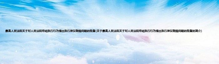 大家好,最高人民法院关于对人民法院终结执行行为提出执行异议期限问题的批复,关于最高人民法院关于对人民法院终结执行行为提出执行异议期限问题的批复的简介很多人还不知道,现在让我们一起来看看吧!