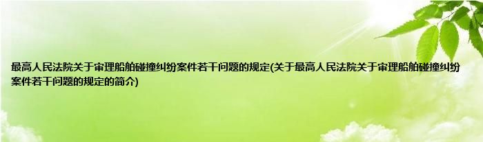 本文关于最高人民法院关于审理船舶碰撞纠纷案件若干问题的规定的简介就讲解完毕,希望对大家有所帮助。