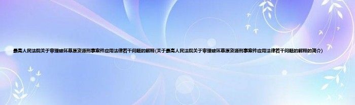 大家好,最高人民法院关于审理破坏草原资源刑事案件应用法律若干问题的解释,关于最高人民法院关于审理破坏草原资源刑事案件应用法律若干问题的解释的简介很多人还不知道,现在让我们一起来看看吧!