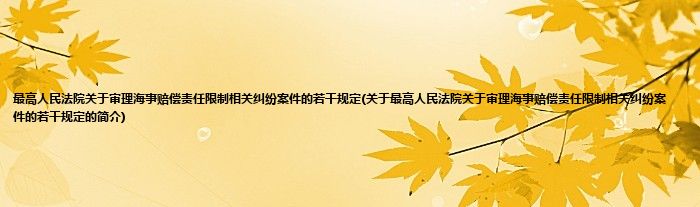大家好,最高人民法院关于审理海事赔偿责任限制相关纠纷案件的若干规定,关于最高人民法院关于审理海事赔偿责任限制相关纠纷案件的若干规定的简介很多人还不知道,现在让我们一起来看看吧!