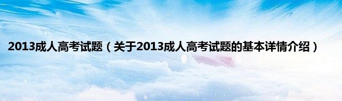本文关于2013成人高考试题的基本详情介绍就讲解完毕,希望对大家有所帮助。