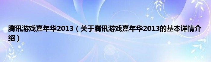 本文关于腾讯游戏嘉年华2013的基本详情介绍就讲解完毕,希望对大家有所帮助。