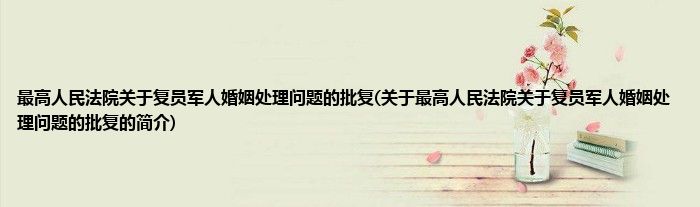 本文关于最高人民法院关于复员军人婚姻处理问题的批复的简介就讲解完毕,希望对大家有所帮助。