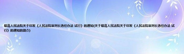 大家好,最高人民法院关于印发《人民法院审判长选任办法 试行》的通知,关于最高人民法院关于印发《人民法院审判长选任办法 试行》的通知的简介很多人还不知道,现在让我们一起来看看吧!