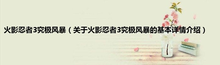 本文关于火影忍者3究极风暴的基本详情介绍就讲解完毕,希望对大家有所帮助。
