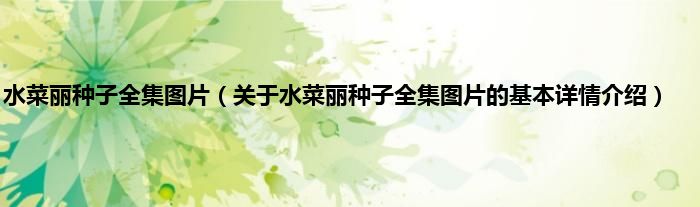 本文关于水菜丽种子全集图片的基本详情介绍就讲解完毕,希望对大家有所帮助。
