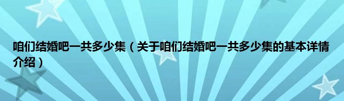 本文关于咱们结婚吧一共多少集的基本详情介绍就讲解完毕,希望对大家有所帮助。