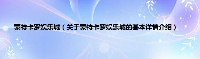 本文关于蒙特卡罗娱乐城的基本详情介绍就讲解完毕,希望对大家有所帮助。