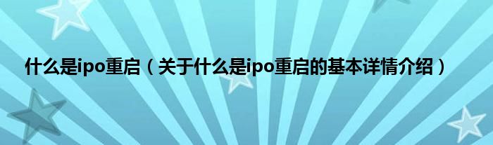本文关于什么是ipo重启的基本详情介绍就讲解完毕,希望对大家有所帮助。