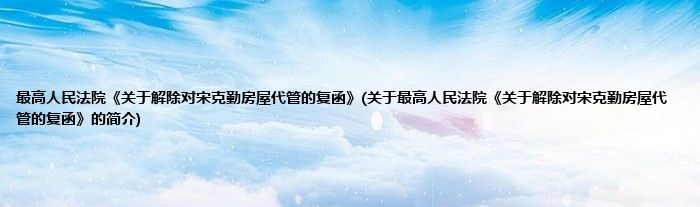最高人民法院《关于解除对宋克勤房屋代管的复函》(关于最高人民法院《关于解除对宋克勤房屋代管的复函》的简介)