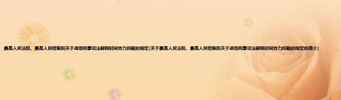 大家好,最高人民法院、最高人民检察院关于适用刑事司法解释时间效力问题的规定,关于最高人民法院、最高人民检察院关于适用刑事司法解释时间效力问题的规定的简介很多人还不知道,现在让我们一起来看看吧!