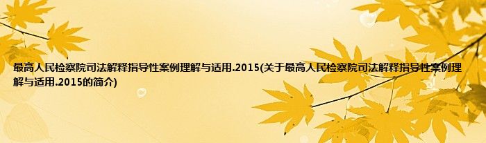 本文关于最高人民检察院司法解释指导性案例理解与适用.2015的简介就讲解完毕,希望对大家有所帮助。