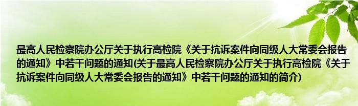 1、 最高人民检察院办公厅关于执行高检院《关于抗诉案件向同级人大常委会报告的通知》中若干问题的通知在1995.10.25由最高人民检察院办公厅颁布。