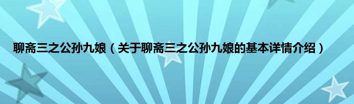 本文关于聊斋三之公孙九娘的基本详情介绍就讲解完毕,希望对大家有所帮助。