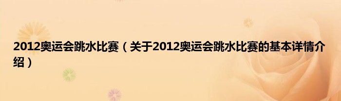 2012奥运会跳水比赛(关于2012奥运会跳水比赛的基本详情介绍)