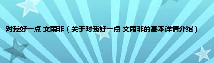 对我好一点 文雨非(关于对我好一点 文雨非的基本详情介绍)