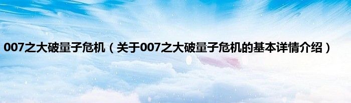 本文关于007之大破量子危机的基本详情介绍就讲解完毕,希望对大家有所帮助。