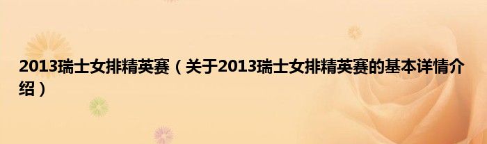 本文关于2013瑞士女排精英赛的基本详情介绍就讲解完毕,希望对大家有所帮助。