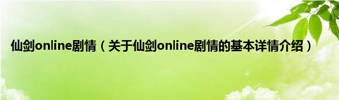本文关于仙剑online剧情的基本详情介绍就讲解完毕,希望对大家有所帮助。