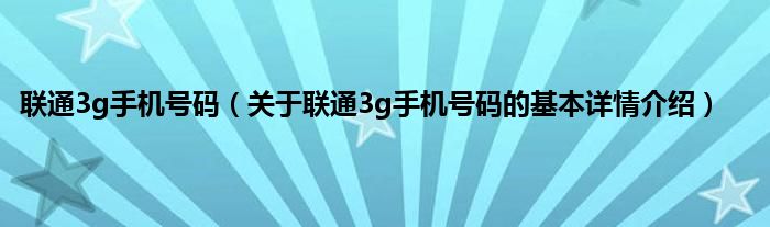 本文关于联通3g手机号码的基本详情介绍就讲解完毕,希望对大家有所帮助。