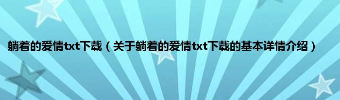 本文关于躺着的爱情txt下载的基本详情介绍就讲解完毕,希望对大家有所帮助。