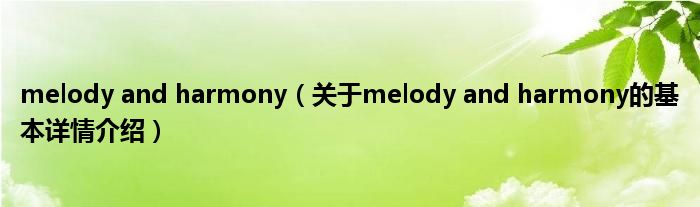 本文关于melody and harmony的基本详情介绍就讲解完毕,希望对大家有所帮助。