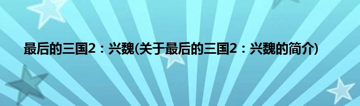 1、 《最后的三国2:兴魏》是一部历史类型网络小说。