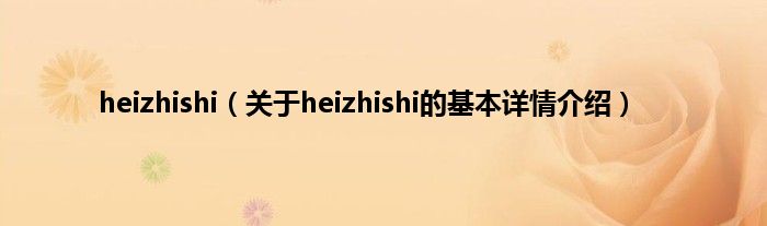 本文关于heizhishi的基本详情介绍就讲解完毕,希望对大家有所帮助。