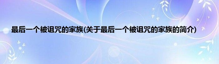 本文关于最后一个被诅咒的家族的简介就讲解完毕,希望对大家有所帮助。