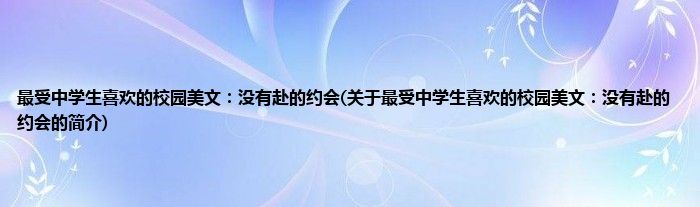 本文关于最受中学生喜欢的校园美文:没有赴的约会的简介就讲解完毕,希望对大家有所帮助。
