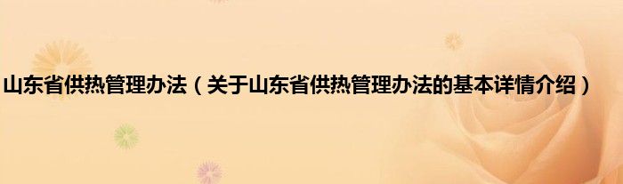 本文关于山东省供热管理办法的基本详情介绍就讲解完毕,希望对大家有所帮助。