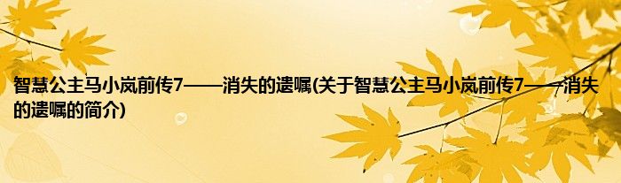 本文关于智慧公主马小岚前传7——消失的遗嘱的简介就讲解完毕,希望对大家有所帮助。
