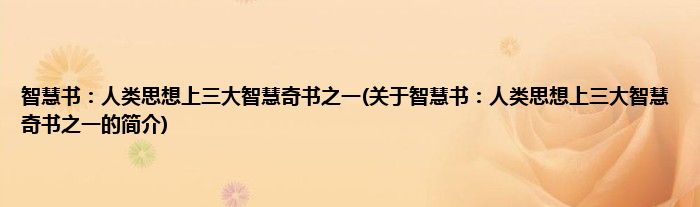 大家好,智慧书:人类思想上三大智慧奇书之一,关于智慧书:人类思想上三大智慧奇书之一的简介很多人还不知道,现在让我们一起来看看吧!