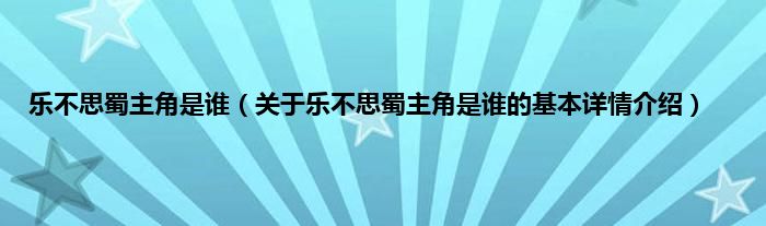 本文关于乐不思蜀主角是谁的基本详情介绍就讲解完毕,希望对大家有所帮助。