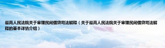 最高人民法院关于审理民间借贷司法解释(关于最高人民法院关于审理民间借贷司法解释的基本详情介绍)