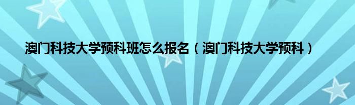 大家好,小问来为大家解答以上问题。澳门科技大学预科班怎么报名,澳门科技大学预科这个很多人还不知道,现在让我们一起来看看吧!
