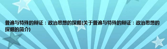 本文关于普遍与特殊的辩证:政治思想的探掘的简介就讲解完毕,希望对大家有所帮助。