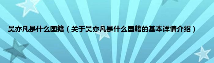 本文关于吴亦凡是什么国籍的基本详情介绍就讲解完毕,希望对大家有所帮助。