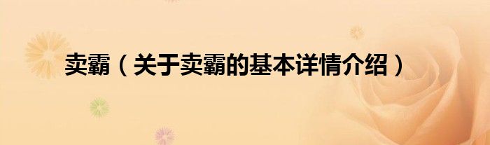 本文关于卖霸的基本详情介绍就讲解完毕,希望对大家有所帮助。