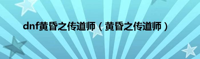 大家好,小问来为大家解答以上问题。dnf黄昏之传道师,黄昏之传道师这个很多人还不知道,现在让我们一起来看看吧!
