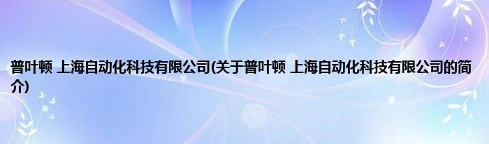 本文关于普叶顿 上海自动化科技有限公司的简介就讲解完毕,希望对大家有所帮助。