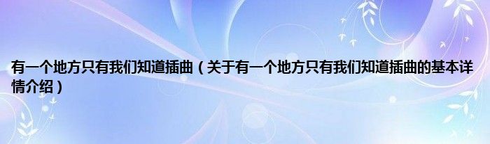 本文关于有一个地方只有我们知道插曲的基本详情介绍就讲解完毕,希望对大家有所帮助。