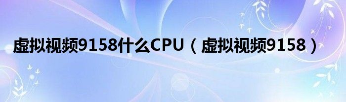 大家好,小问来为大家解答以上问题。虚拟视频9158什么CPU,虚拟视频9158这个很多人还不知道,现在让我们一起来看看吧!