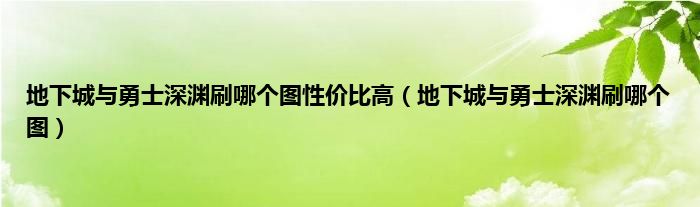 以上就是【地下城与勇士深渊刷哪个图性价比高,地下城与勇士深渊刷哪个图】相关内容。