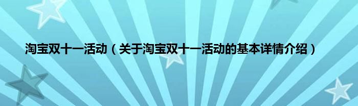 本文关于淘宝双十一活动的基本详情介绍就讲解完毕,希望对大家有所帮助。