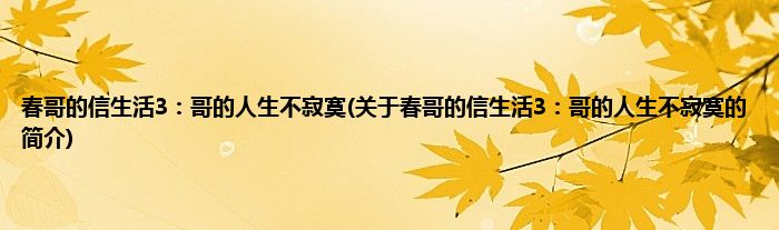 本文关于春哥的信生活3:哥的人生不寂寞的简介就讲解完毕,希望对大家有所帮助。