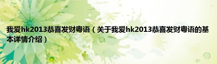 本文关于我爱hk2013恭喜发财粤语的基本详情介绍就讲解完毕,希望对大家有所帮助。