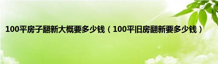 100平房子翻新大概要多少钱(100平旧房翻新要多少钱)