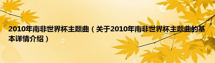 本文关于2010年南非世界杯主题曲的基本详情介绍就讲解完毕,希望对大家有所帮助。